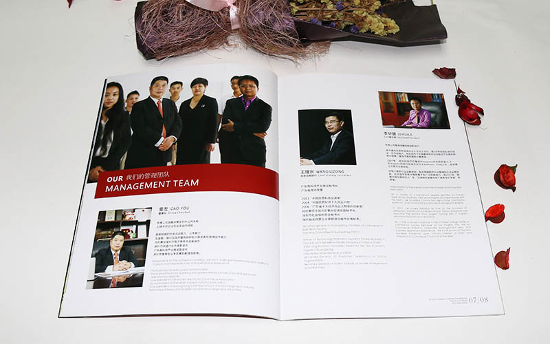 慮到企業畫冊的内容的多少,選擇不同素質的紙材。如果畫冊的内容不多 ,可以採用較爲厚重的紙材,以體現企業的品質。企業畫冊的封面也可以採用凸印,可以使讀者拿在手中有更好的手感。或者企業畫冊的印制可以與一些包