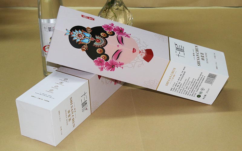 1.材質:盒子有兩個款式,兩款的材質也一樣,盒子面紙用157G銅版紙單面彩色印刷,盒子中間的人物局部UV光油,文字logo燙黃金和黑金 紅金三種色。盒子的上蓋結構最複雜,整款盒子都是純手工制作。