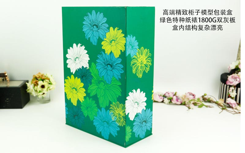 1. 材質:盒子表面用綠色特種紙彩色圖案印刷,表面過一層(céng)水油裱1800G雙灰闆,盒型比較特殊屬於(yú)衣櫃的款式盒子下面配一個抽屜,盒子裏面可以放一面鏡子,盒子比較繁瑣都是手工制作。