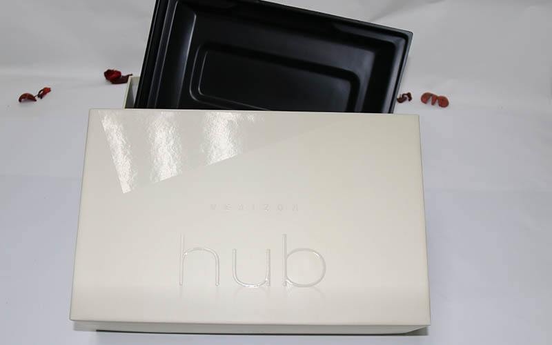 1.面紙:採用進口太陽銅版紙印刷漸變灰色和淺黃色,面紙單面過啞膠,局部UV,内包材質裱進口滑面1800G雙灰闆,盒型爲上下天地蓋,盒内的産品内托裝韌度比較好的黑色進口矽膠PVC材質,此款盒子是美國一家上市公司做的電子産品包裝盒,品質要求極高,整款盒子都是流水線制作